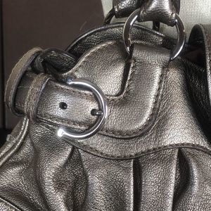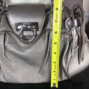 SALVATORE FERRAGAMO Gancini Metallic Silver Grey Leather Hand Bag Like New Cndtn