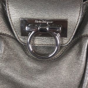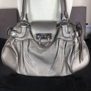 SALVATORE FERRAGAMO Gancini Metallic Silver Grey Leather Hand and Shoulder Bag
