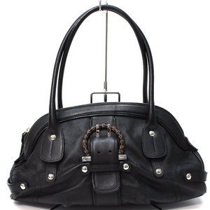 SALVATORE FERRAGAMO Gancini Semi Shoulder Bag Hand Bag Leather Black