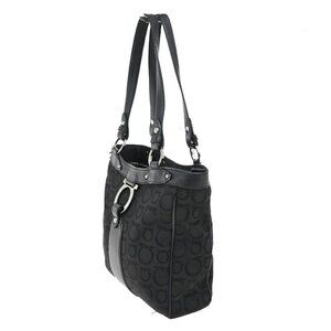 SALVATORE FERRAGAMO Gancini Tote Shoulder Bag Canavs Leather Black SHW 09KB197
