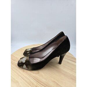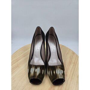 SALVATORE FERRAGAMO Green Tie Dye Suede Open Peep Toe Pumps Heels Size 8