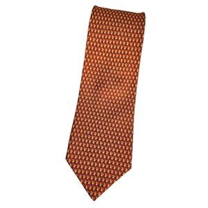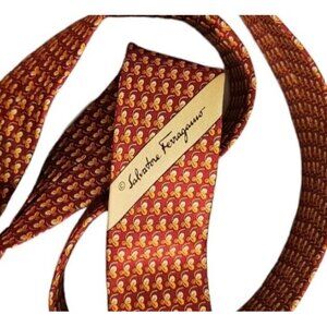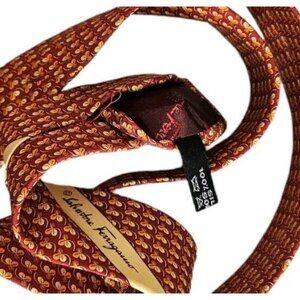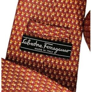 SALVATORE FERRAGAMO Men's 100% Silk Necktie LUXURY Red Orange Floral W:3.6" EUC