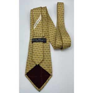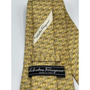 SALVATORE FERRAGAMO Men's 100% Silk Yellow Gold Butterfly Necktie ITALY Pre-Owned in Excellent Condition! 60" Long. NO spots, stains, snags or holes. Pristine condition. Non-smoking home.