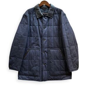 SALVATORE FERRAGAMO Men's Navy Quilted Jacket Coat, Black Leather Collar