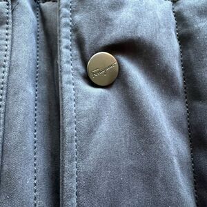SALVATORE FERRAGAMO Navy Quilted Jacket Coat, Black Leather Collar