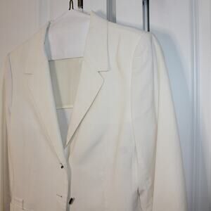SALVATORE FERRAGAMO Off-White Cotton Notched Lapel Blazer | US 10