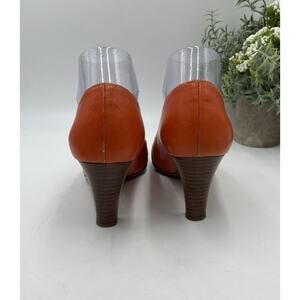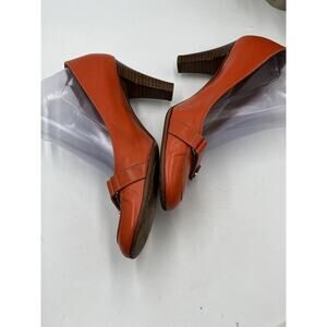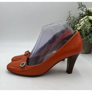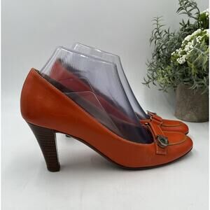 SALVATORE FERRAGAMO Orange Leather Gancini Pumps Button Metal Sz 7.5B/38