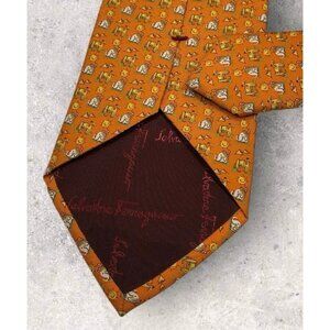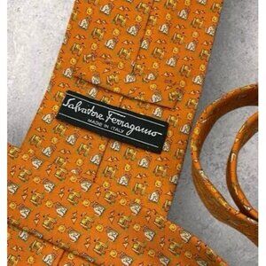 SALVATORE FERRAGAMO Silk Tie ITALY Orange Camel Elephant W:3.7" EUC
