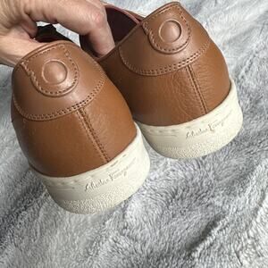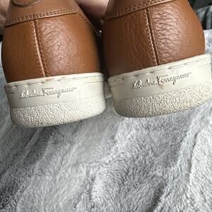 SALVATORE FERRAGAMO Size 10 B vintage tan leather low cut Designer sneakers