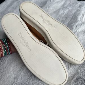 The Salvatore Ferragamo Size 10 B vintage tan leather low cut designer sneakers are a stylish and iconic pair of shoes for women. Featuring a solid brown color and made from high-quality leather, these sneakers have a classic low-top style with a tie closure. With the designer brand of Salvatore Ferragamo, these athletic shoes are perfect for those looking for both comfort and fashion. The vintage design adds a touch of nostalgia to the overall look, making these sneakers a versatile and timeless addition to any shoe collection.