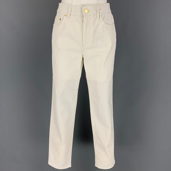 SALVATORE FERRAGAMO Size 6 White Cotton Zip Fly Jeans