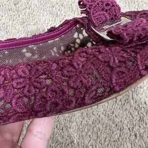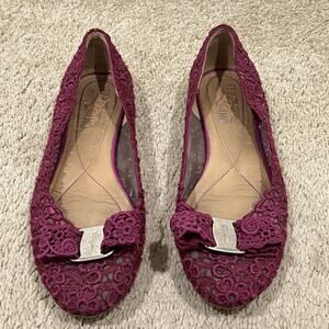 SALVATORE FERRAGAMO Size 7.5 Varina Crochet Ballet Flats Round Toe Slip On Wine