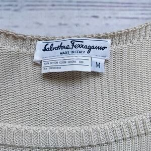 This is a beautiful Salvatore Ferragamo sweater in size M. 100 % cotton. Silver signature buckles on sides. In excellent condition. Measures approximately 19" across chest and 27" in length.