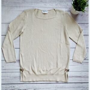 SALVATORE FERRAGAMO Tan Beige 100 % Cotton Buckle Detail Sweater size M