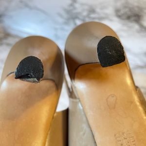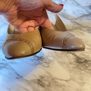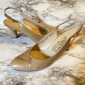 SALVATORE FERRAGAMO Tan Snakeskin Trim Leather Slingback Heels 7…