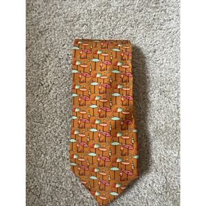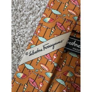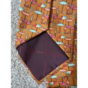 SALVATORE FERRAGAMO Tie Beach Umbrella Seagull Print Summer Vacation Orange