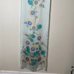SALVATORE FERRAGAMO Vintage Silk Sunflower Print Pale Blue Long Length Scarf