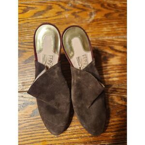 SALVATORE FERRAGAMO WOMAN’S SUEDE SLIP ON brown HEELS US SIZE 7.5 B