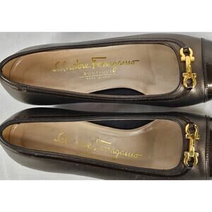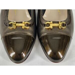 SALVATORE FERRAGAMO WOMEN’S BROWN PUMP – SIZE 3.5B – BRONZE PATENT TOE & GANCINI