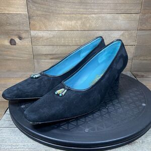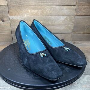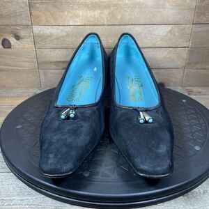 SALVATORE FERRAGAMO Womens Size 7 B Low Heels Pumps Suede Black Turquoise