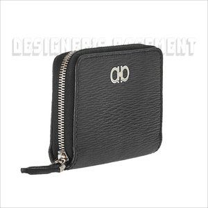 SALVATORE FERRAGAMO black Leather ID window Metal GANCINI Logo zip around wallet