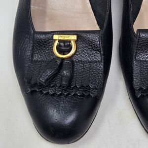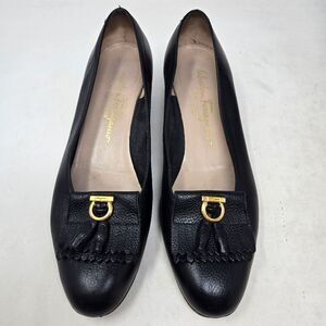 SALVATORE FERRAGAMO Black Leather Women's Kitten Heel Loafers Size 8B