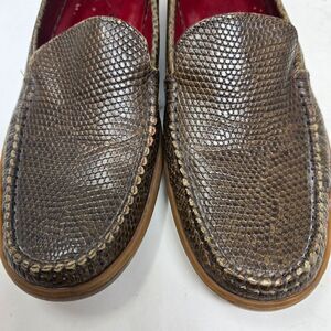 Stylish brown snakeskin leather loafers perfect for any occasion. Comfortable and versatile, these shoes are a must-have for your wardrobe. Size 8B. Please see all photos as this is the exact pair you will receive. Thank you so much for looking. I am always open to reasonable offers. Have a beautiful day!