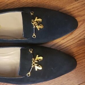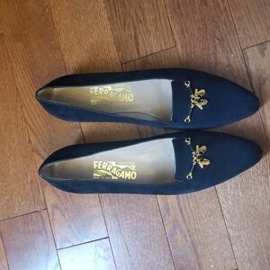 Beautiful Salvatore FERRAGAMO loafers New from Italy 🇮🇹 it says size 11 but I would say its about 9.5 / 10 narrow. Beautiful craftsmanship in gold. shoes are very dark blue almost like black. Resonble offers are welcomed.
