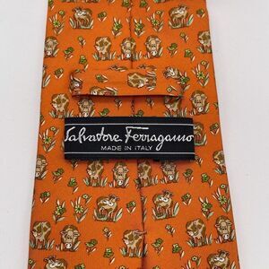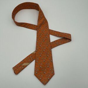 SALVATORE FERRAGAMO Tie Men's Orange ORN Cow All Over Pattern Made in Italy