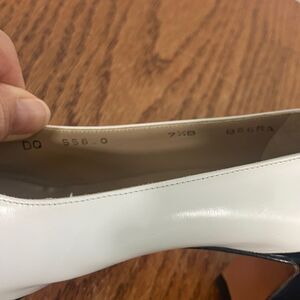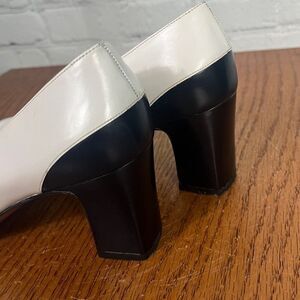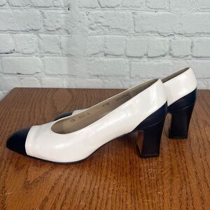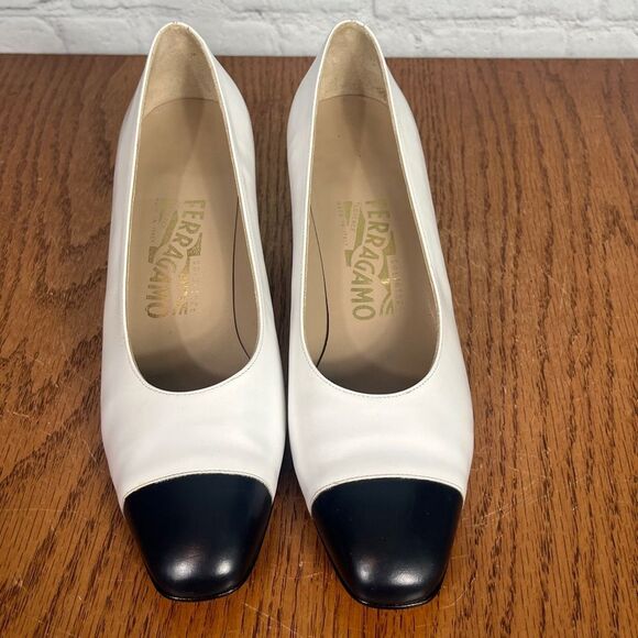 SALVATORE FERRAGAMO VTG Navy and White Block Heel Pumps size 7.5 B