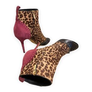 SALVATORE FERRAGAMO Calf Hair Animal Print Ankle Booties |Size: 9|