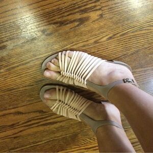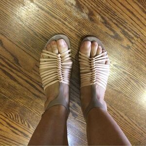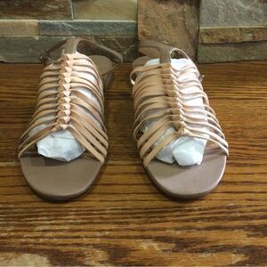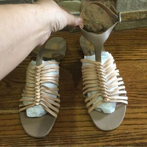 Gorgeous nude sandals in excellent condition, there is a small defect on the heel. Indicated in the last photo. Worn several times. 100% leather. Made in Italy. No box . Color, light pink and cappuccino.