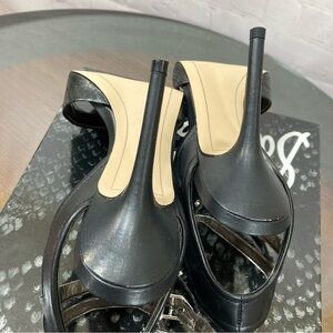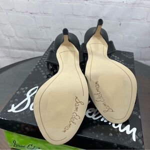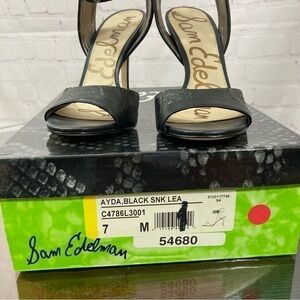 SAM EDELMAN AYDA BLACK LEATHER SNAKE SKIN EMBOSSED ANKLE STRAP SANDALS 7