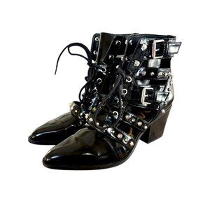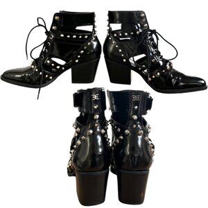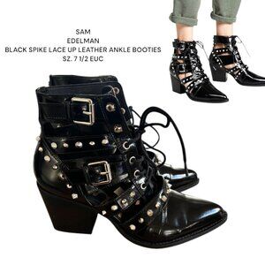 SAM EDELMAN BLACK SPIKE LEATHER POINTED TOE ELANA ANKLE BOOTIES 7.5 EUC
