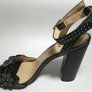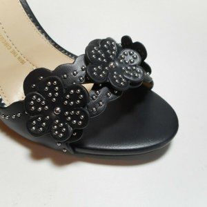 Black Silver Rivets Floral High Heel Sandal Shoes