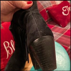 SAM EDELMAN Black Suede Ankle Boots with Fringe/size 6
