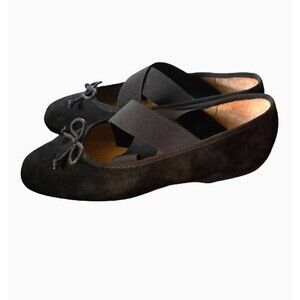 SAM EDELMAN Black Suede Cross Strap Ballerina Flats Size 8