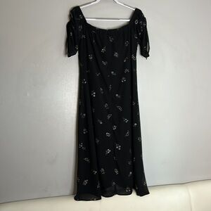 SAM EDELMAN Black dark ditsy floral rouched midi dress women’s 14 plus new w/tag