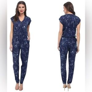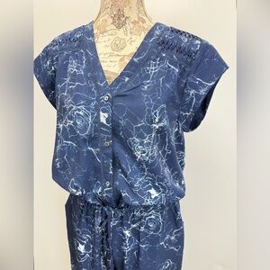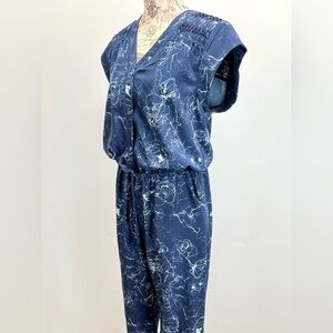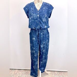 SAM EDELMAN Blue and White abstract print cap sleeve jumpsuit size 10