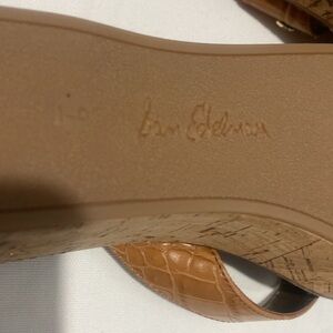 Introducing the SAM EDELMAN Brown Wedge Sandals in size 9, a stunning addition to your footwear collection. These sandals boast a sophisticated brown and tan color combination that exudes timeless elegance. With a comfortable 2 ¾-inch wedge heel, they provide both style and support for all-day wear. Worn once and in excellent condition, they offer the perfect balance of chic design and practicality. Whether you're dressing up for a special occasion or adding a touch of sophistication to your everyday look, these beautiful sandals are sure to turn heads.