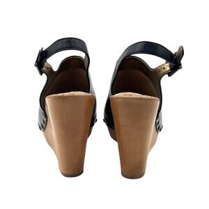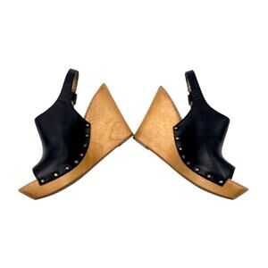 SAM EDELMAN Camilla Black Leather Studded Slingback Wood Wedge Platform Sz 10
