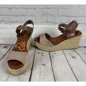 SAM EDELMAN Dimitree espadrille gray brown suede leather wedge sandals 9.5M