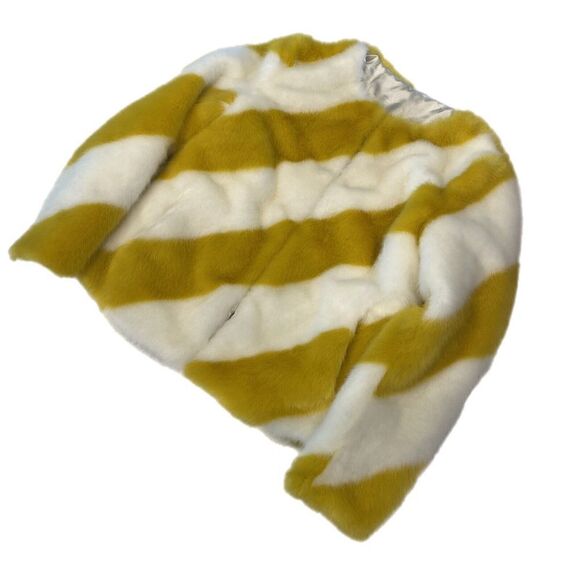 SAM EDELMAN FAUX FUR JACKET YELLOW & IVORY STRIPE SIZE XS.