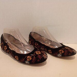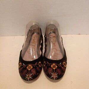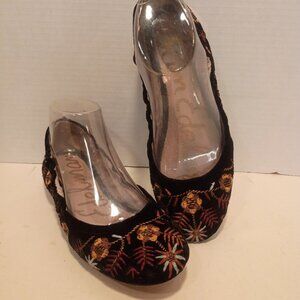 SAM EDELMAN "Farrow" Sz 7US/37EU Black Velvet Embroidered Ballet Flats