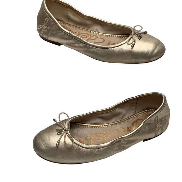 SAM EDELMAN Felicia Gold Leather Slip On Ballet Flats