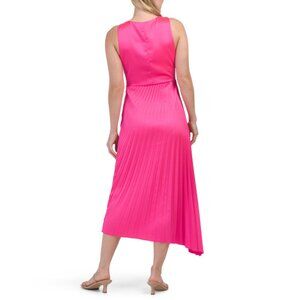 SAM EDELMAN HOT PINK Pleated Asymmetrical Midi Cocktail Dress