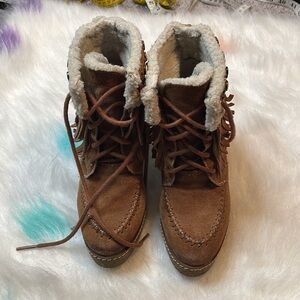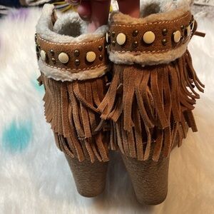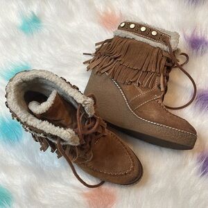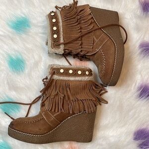 SAM EDELMAN KEMPER FRINGE SUEDE LEATHER ANKLE BOOTIES BOOTS WOMENS 6