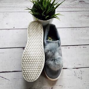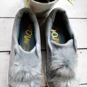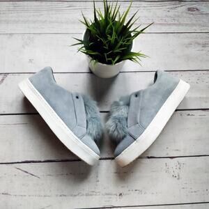 This is a super cute pair of Sam Edelman "Leya" slip-on sneakers in size 9. Soft suede with faux-fur details. The color is "Dusty blue." In great, gently used condition.