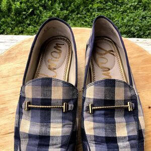 SAM EDELMAN Loraine Loafer Womens Sz 9 Blue Checkered Slip On Plaid Shoes Flat