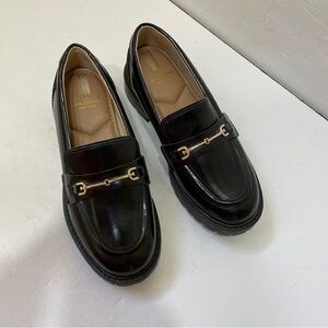 EXCELLENT CONDITION SAM EDELMAN MINI TILLY PLATFORM LOAFERS IN BLACK LEATHER